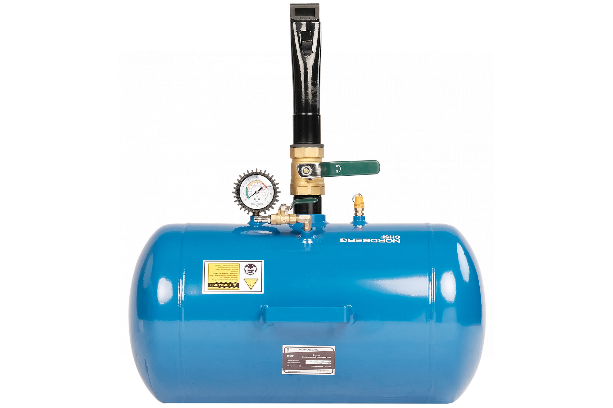 Бустер (Инфлятор), 38 л NORDBERG CH5F предназначен для упрощения посадки бескамерных шин на диск. Также применяется для быстрой подкачки бескамерных шин.